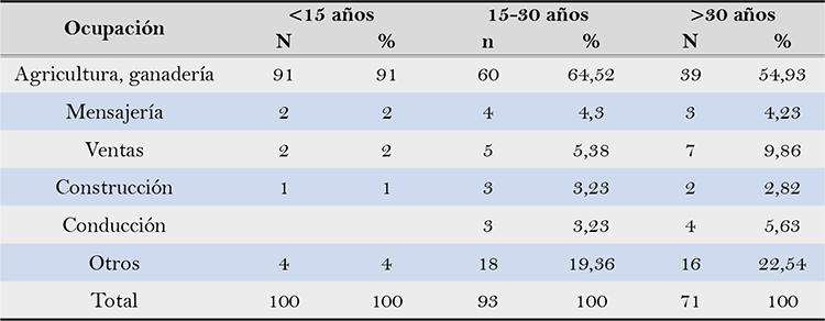 Resultados. Se estudiaron 166 pacientes. El promedio de edad fue de 71 años, 69% de los casos eran mujeres. Todos los pacientes vivían sobre la cordillera de los Andes con alturas promedio de 2.000 msnm. La actividad laboral al aire libre, principalmente agricultura, fue frecuente en la infancia (59%) y fue disminuyendo gradualmente a lo largo de la vida. El 88% de los casos tuvo, al menos, una quemadura solar en su vida. El 52% de los pacientes se clasificaron como de fototipo II, 34% como de fototipo III y 10% como de fototipo IV.